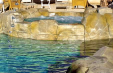 If your pool includes a rock waterfall, you can extend its presence with accent rocks—strategically placed boulders around the pool and spa perimeter.